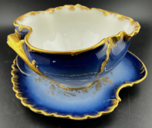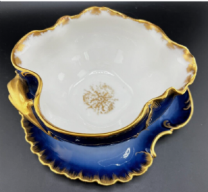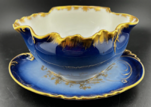 » HAVILAND LIMOGES T.M. JAMES BLUE AND GOLD GRAVY BOAT
